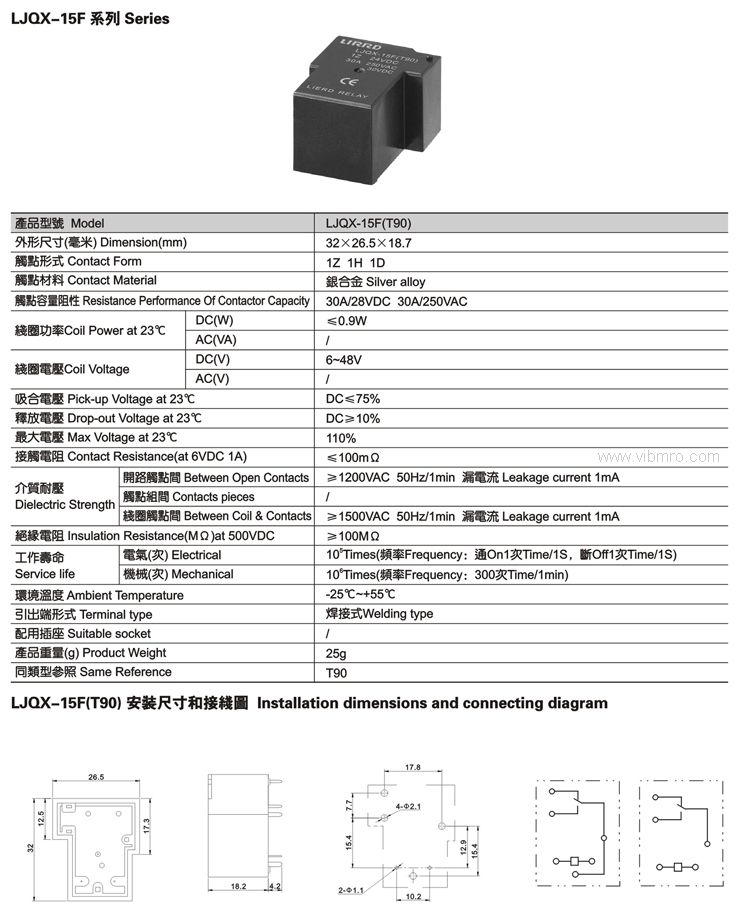 产品标题:LJQX-15F(T90)系列电磁继电器