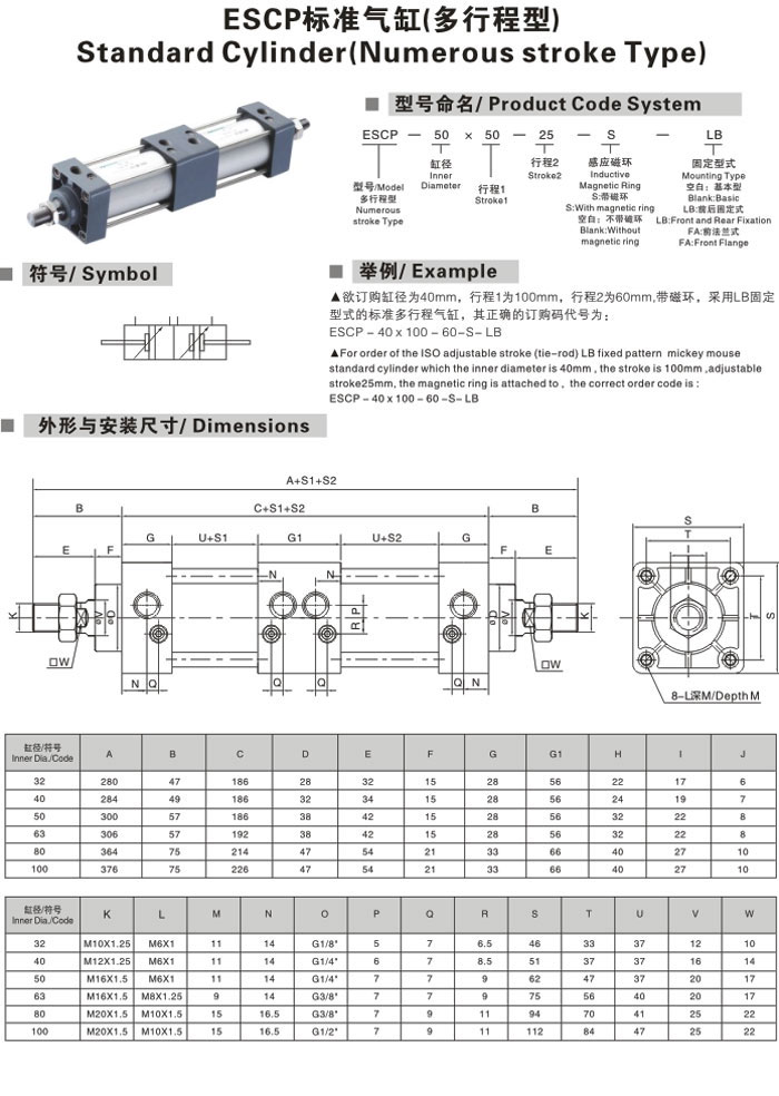 产品标题:多行程型ESCP标准气缸,EASUN亿日气动气缸