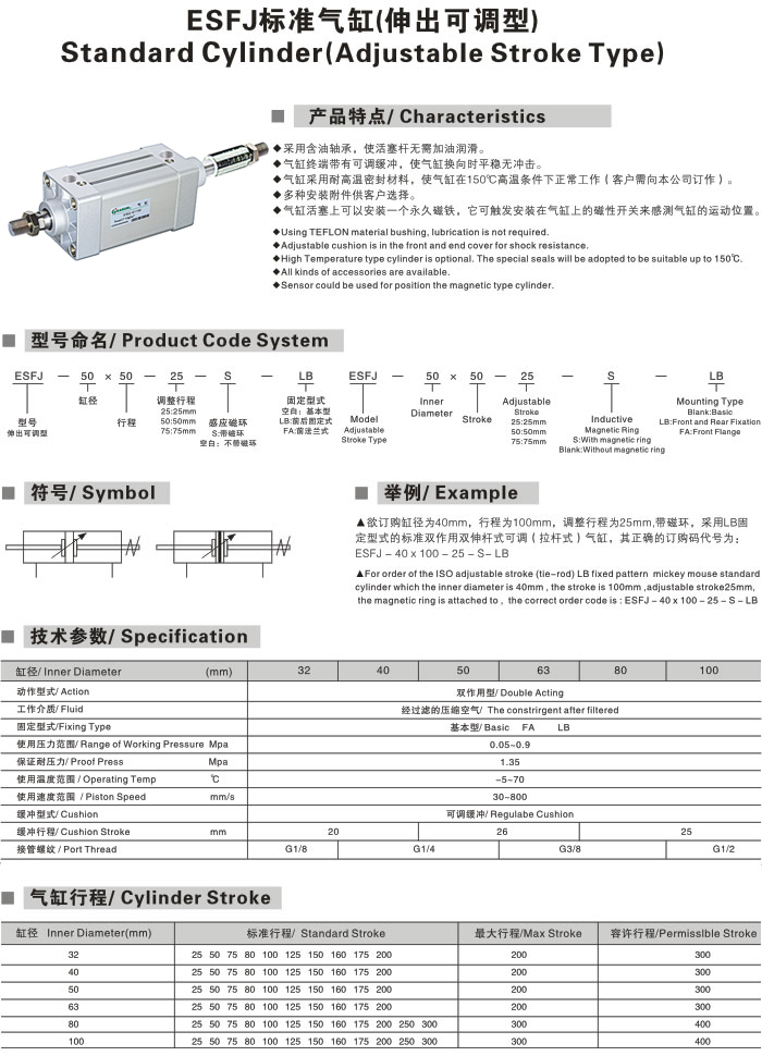 伸出可调型ESFJ标准气缸,EASUN亿日气动不锈钢气缸管,不锈钢气缸,气动气缸,气动导向气缸,不锈钢气动角座阀迷你气缸,tpm迷你气缸