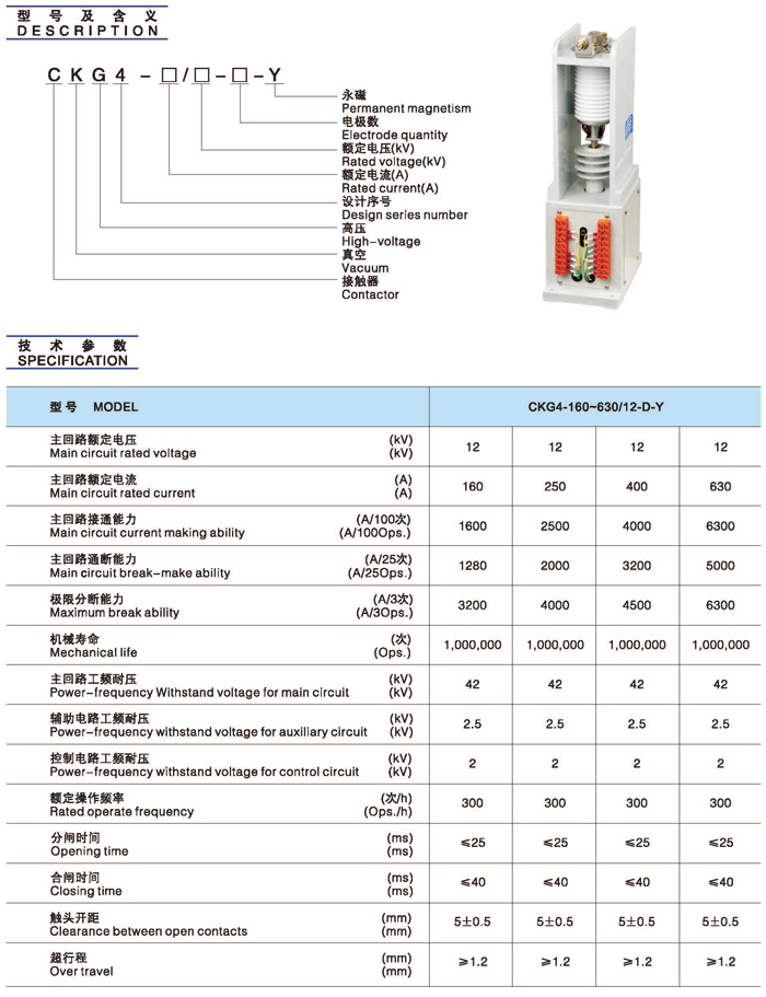 产品标题:CKG4-160/12-D-Y,沪远,HY,CKG4系列交流真空接触器