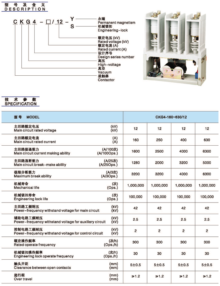 CKG4-250/12-Y,沪远,HY,CKG4系列交流真空接触器