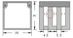 构造: | 由槽底及槽盖两部份组成,底槽两侧设出线孔,出线孔4.5mm,以组合后外部之宽、高为规格标准,每侧设有一条刀割式折痕。UL测试温度50℃。 | |