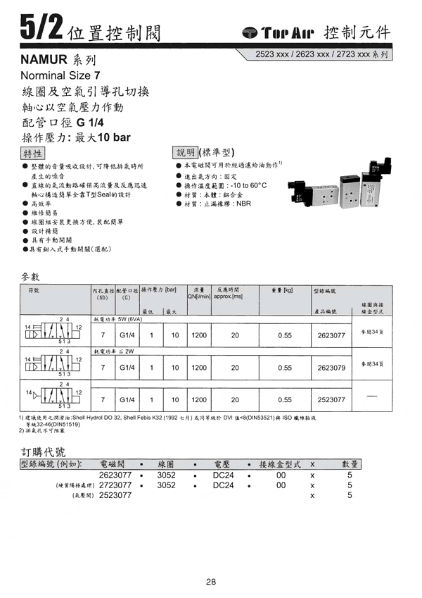2623120,位置控制阀 2523,2623,2723 系列 ,台湾Top Air